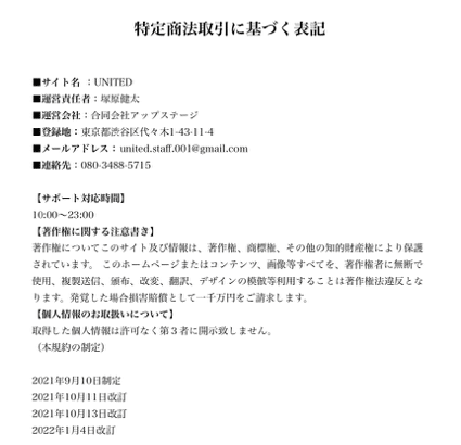 ユナイテッド(UNITED)の会社概要は下記になります。