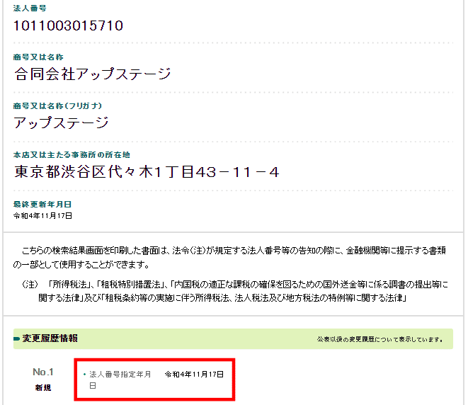 当サイトは国税庁で、合同会社アップステージがきちんと登記している会社なのか確認をしました。