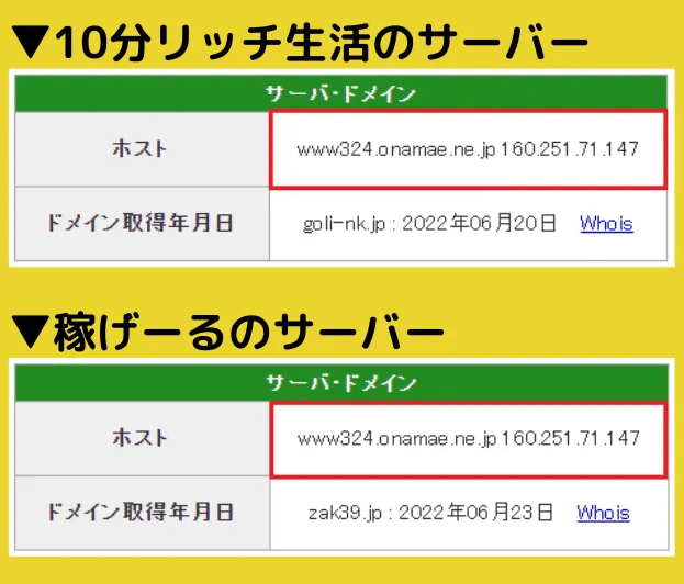10分リッチ生活(合同会社リンク)と稼げーる/株式会社H・Sのサーバーはなんと...全く一緒でした。