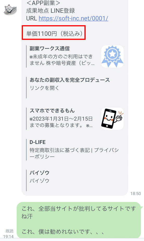 しかも、これらの詐欺会社の案件を紹介して、ユーザーに登録してもらって報酬は1,100円(税込み)...