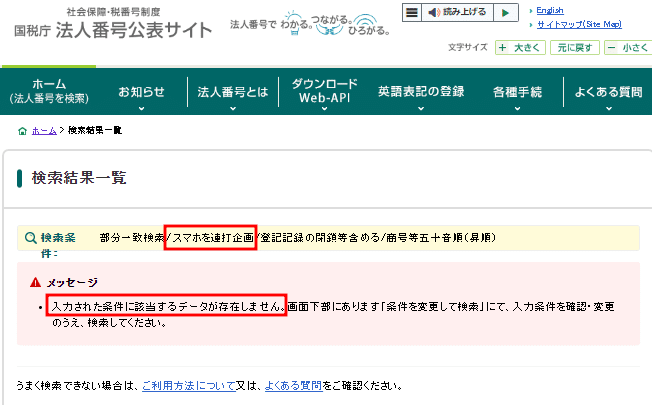 念のために国税庁に照会をかけましたがヒットしませんでした。