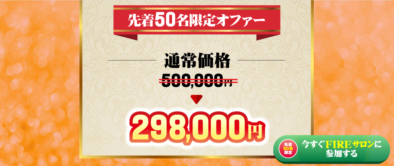 今回のFIREサロンを実践するためには298,000円という高額な費用がかかります。