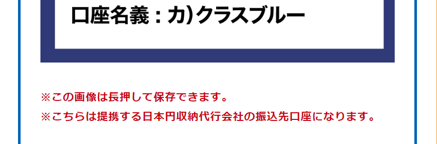 銀行振込で見たところ振込先に指定された会社がなんと「株式会社クラスブルー」という会社に指定されていました...