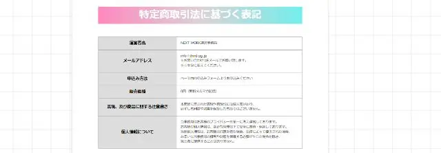 その結果、ネクストワーク(NEXT WORK)からは、ビジネスモデルが不明確であるというだけでなく、話が上手すぎると感じる点があり、特商法の記載事項に関しても不審な点がありました。