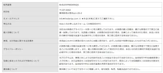 販売業者は株式会社FREDERIQSであり、有料の販売が行われる場合には法律違反であるため、このツールは完全に無料で提供されています。
