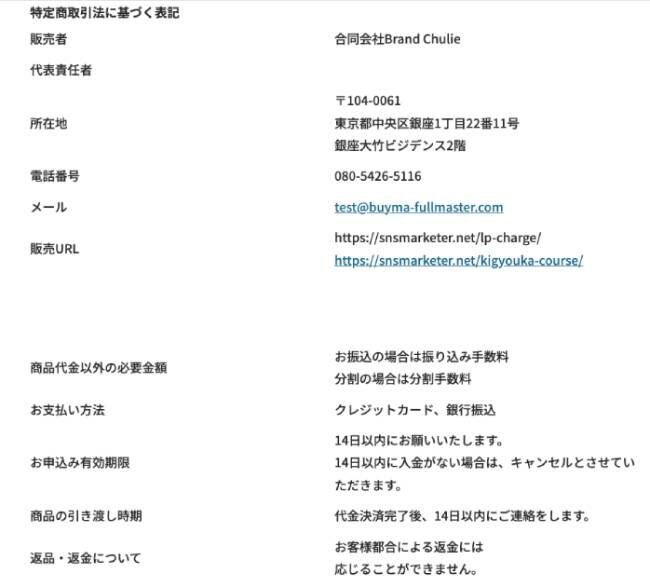 それゆえ、販売者である合同会社Brand Chulieについての信頼性を調べてみました。