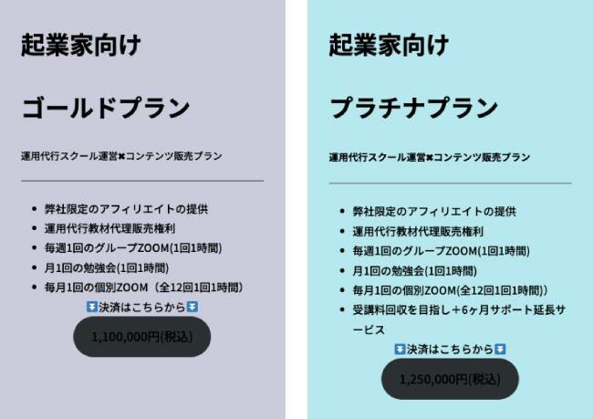 具体的には、ゴールドプランとプラチナプランが用意されており、販売価格は1,100,000円と1,250,000円です。