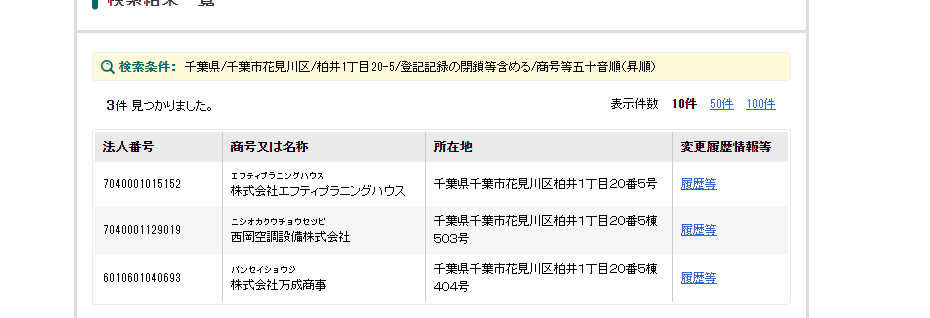 同じ住所にまさかの複数の会社がヒットして、この住所の建物調べたんですがどうやら団地のような建物でした。