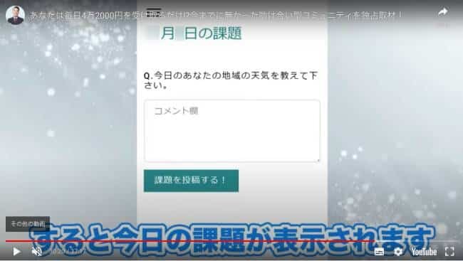 そして、動画内で分配金を受け取る方法としては、簡単な課題に毎日回答することが条件となっているそうなのですが、質問の内容は下記を見てください。