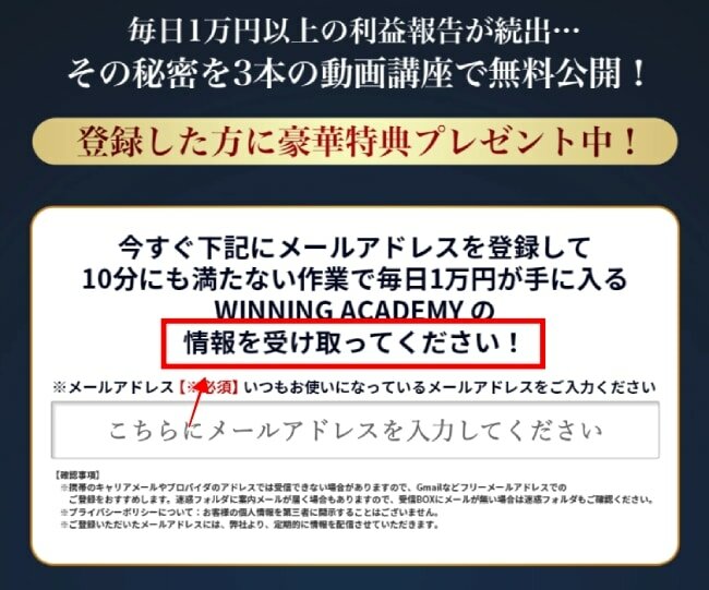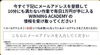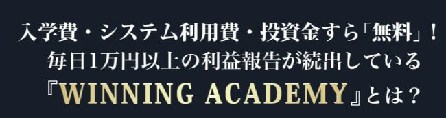 WINNING ACADEMY(ウイニングアカデミー)というものですが、なにやら、システムを受け取るのみで毎日万円以上稼げるという触れ込みでユーザーを集めております。
