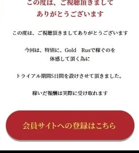 このようにトライアル期間で5日間のみ会員サイトへの登録が可能とのこと笑
