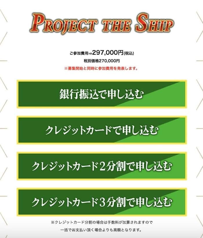 THE SHIP(ザ・シップ)の参加費用は297,000円になります。