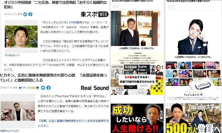 中田敦彦,ひろゆき,投資クラブ,はなりすまし詐欺!関わると大変な目に遭うので危険!