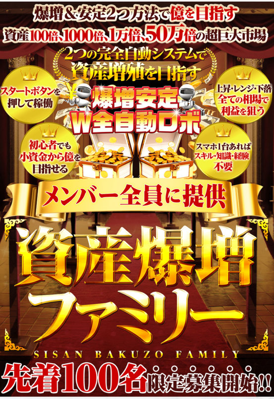 何やら爆増安定W全自動ロボでは、実践することと言えばスタートボタンを押すのみで少資金から億を狙える案件として誇大宣伝バリバリでユーザーを集めています。