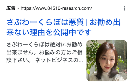 え?!ってなりまして、速攻でグーグルで検索かけて確認してみたら、Googleの広告つけているオプトインアフィリエイターの「ちえ先生(CHIE-BUKURO)」と「奥山友梨」が当サイトを「詐欺サイト」と注意喚起していました笑
