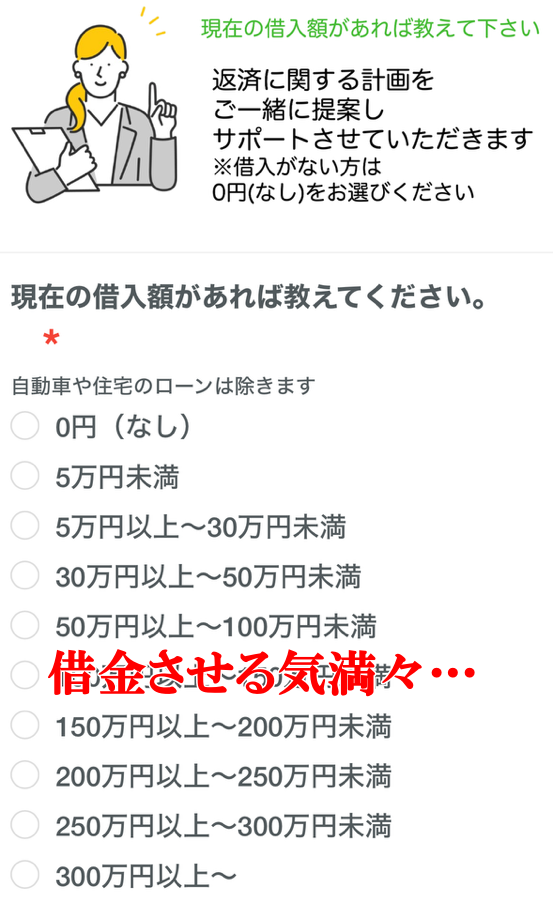 恐ろしいことにアンケートの時点で借金の有無や債務整理をした過去があるかをチェックしている