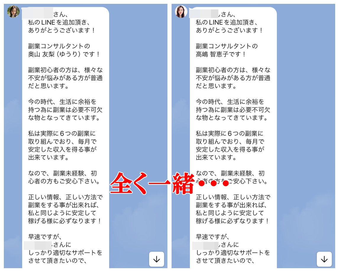 同一と判断をした根拠ですが両方のLINEに登録をしたんですが