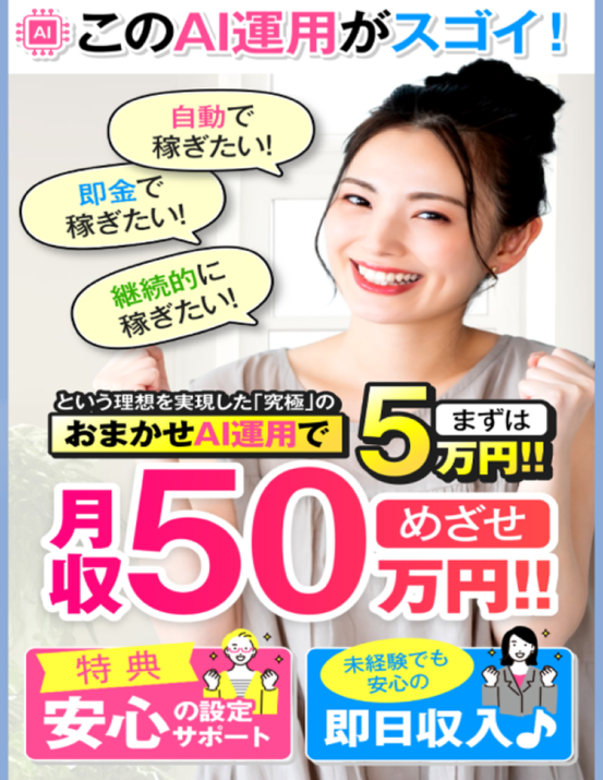 LINEから「優良副業」として紹介された案件は「おまかせAI運用」という副業でした。