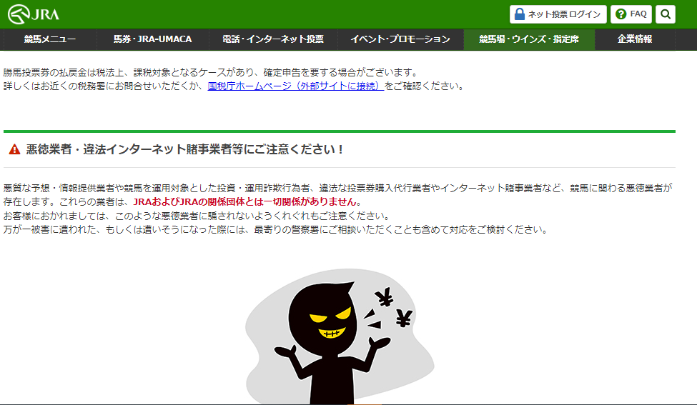 JRAもこのように注意喚起をしています。