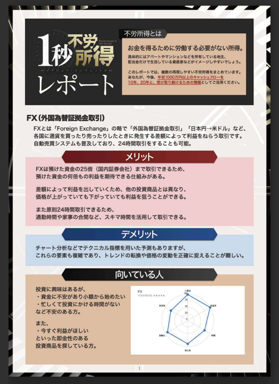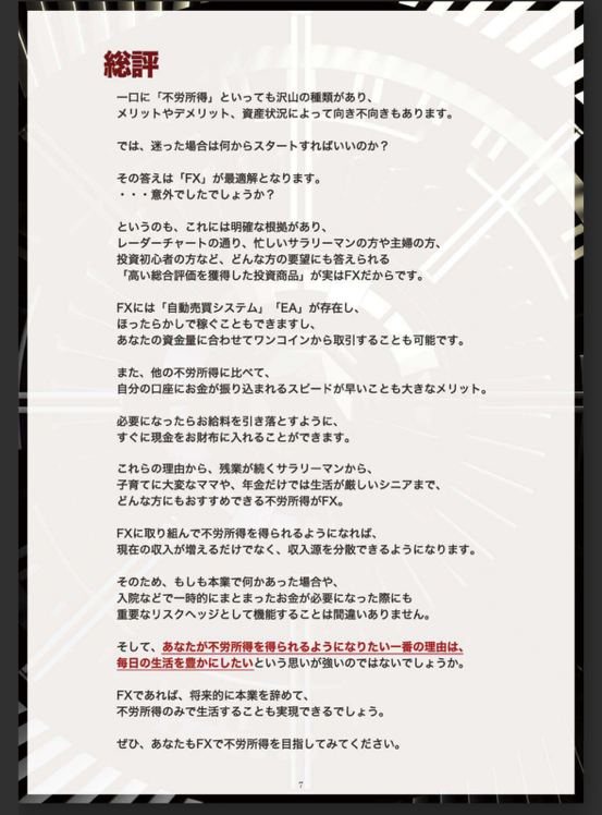 なるほど。結局自分たちの会社がFX自動売買の案件のビジネスをやっているから、FXに誘導するためのレポートってことですね。