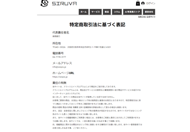 特商法では、「大阪府大阪市中央区内本町2-1-19第十松屋ビル501」が記載されていました。