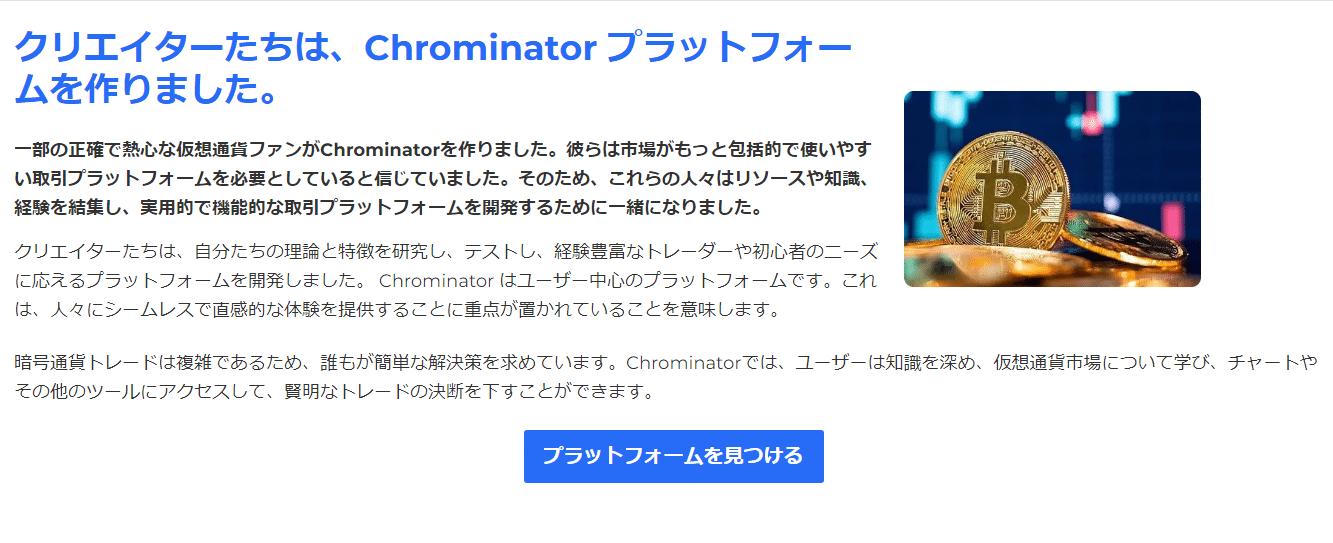 まず始めに、言っておきますがchrominator(クロミネーター)というのは、一見魅力的な投資を誘うサイトに見えますが、ただの詐欺サイトです汗