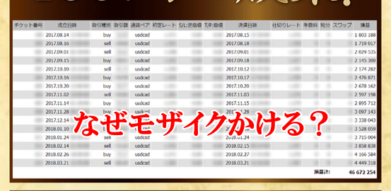 このように売買履歴を載せていますが何故かモザイク処理をかけています。